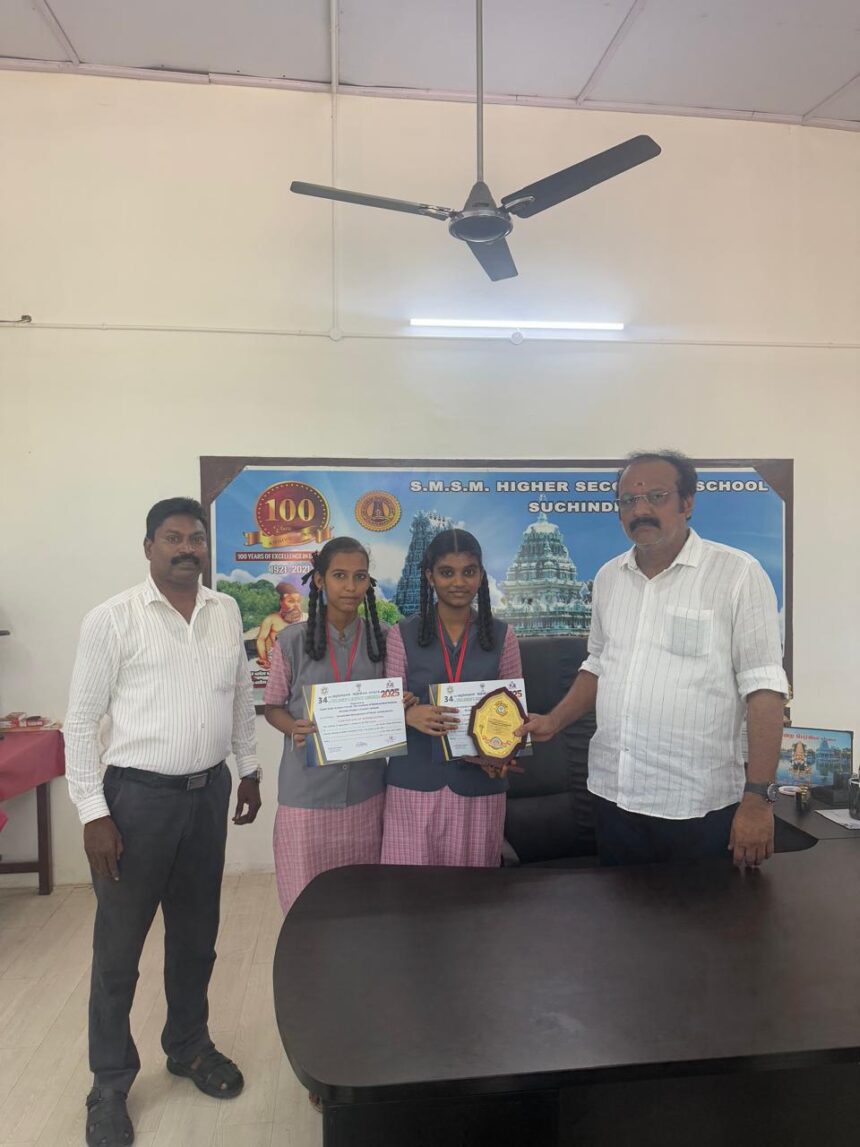 சுசீந்திரம் எஸ்.எம்.எஸ்.எம் மேல்நிலைப் பள்ளி மாணவிகள் அபிநயா மற்றும் கார்த்திகா ஆகியோர் தமிழ்நாடு அறிவியல் இயக்கம் நடத்தும் மாநில அளவிலான குழந்தைகள் அறிவியல் மாநாட்டில் ‘சுசீந்திரம் பழையாறு ஓர் ஆய்வு’ என்ற அறிவியல் ஆய்வு திட்டத்தை விளக்குவதற்காக தேர்வு செய்யப்பட்டுள்ளனர்.