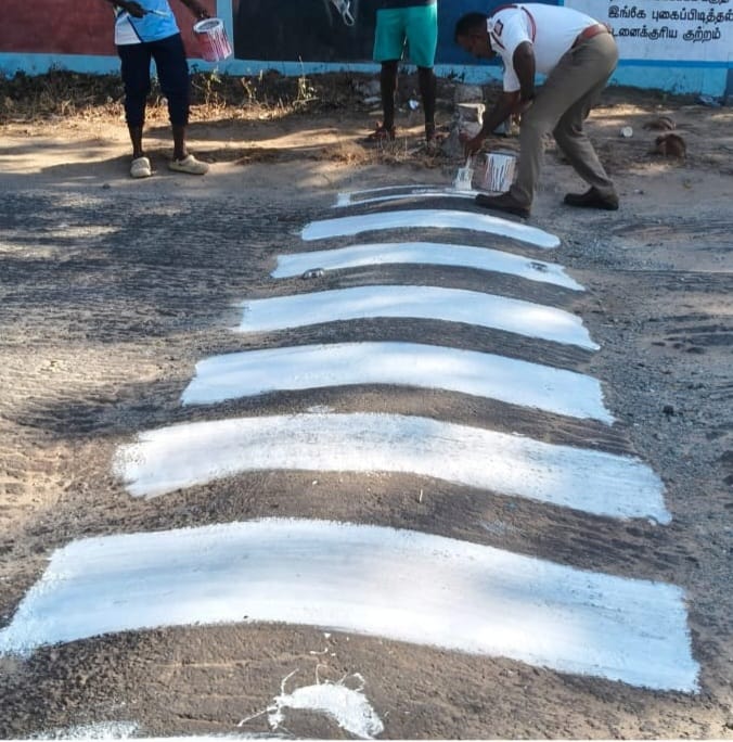 கன்னியாகுமரி மாவட்ட காவல் கண்காணிப்பாளர் ஸ்டாலின் உத்தரவுப்படி காவல்துறை கன்னியாகுமரி காவல் துணை கண்காணிப்பாளர் மகேஷ் குமார் மேற்பார்வையில் கன்னியாகுமரி போக்குவரத்து காவல் ஆய்வாளர் பிரபு, உதவி ஆய்வாளர் ஜெய பிரகாஷ் மற்றும் போக்குவரத்து காவலர்கள் ஆகியோர் இணைந்து கன்னியாகுமரி பகுதியில் சாலையின் அருகே உள்ள அனைத்து பள்ளிக்கூடங்களின் முன்பும் பள்ளிக்கு செல்லும் குழந்தைகள் விபத்து இன்றி சாலையை கடக்க வசதியாகவும், பாதசாரிகள் நடந்து செல்லவும் வெள்ளை நிற கோடுகள் வரையப்பட்டது. அதனைத் தொடர்ந்து அனைத்து வேகத்தடைகளிலும் வெள்ளை நிறக் கோடுகள் வரைந்து வாகனங்களின் வேகத்தை கட்டுப்படுத்த நடவடிக்கை மேற்கொள்ளப்பட்டது. வாகன விபத்துகள் இல்லா கன்னியாகுமரி இலக்கு என்ற மாவட்ட காவல் கண்காணிப்பாளர் அவர்களின் அறிவுரைகள் படி கன்னியாகுமரி போக்குவரத்துக் காவல்துறையினர் துரித நடவடிக்கையை அனைத்து தரப்பினரும் பாராட்டி வருகின்றனர்.