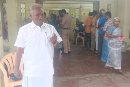 சத்திரம் மண்டல அலுவலகத்தில் உள்ள வாக்கு சாவடியில் வாக்களித்தார்