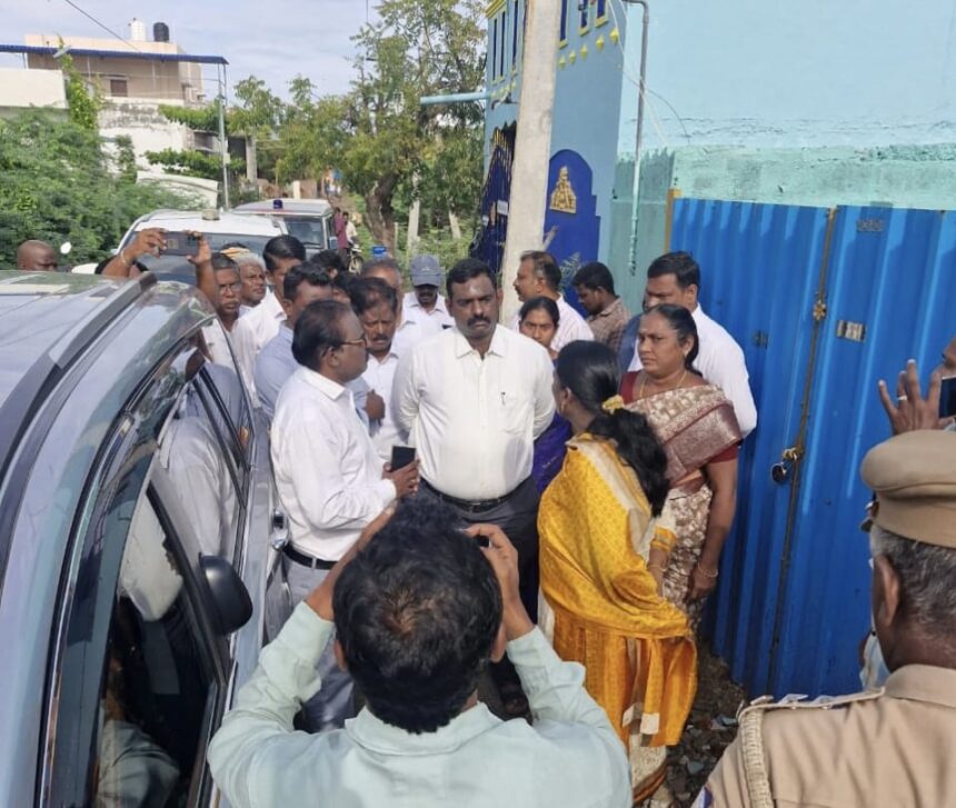 மதுரை மாநகராட்சிக்குட்பட்ட கரிசல்குளம் பகுதியில் விளாங்குடி கண்மாய் வரத்து கால்வாய் மற்றும் அதன் சுற்று வட்டார குடியிருப்பு பகுதிகளில் மதுரை மாவட்ட ஆட்சித்தலைவர் மா.சௌ.சங்கீதா கனமழை காரணமான தேங்கிய மழைநீரை அகற்றுவதற்கு மாநகராட்சி மற்றும் நீர்வளத்துறை மூலம் மேற்கொள்ளப்பட்ட நடவடிக்கைகளை பார்வையிட்டு ஆய்வு செய்தார். மதுரை மாநகராட்சி ஆணையாளர் ச.தினேஷ்குமார் உடன் உள்ளார்