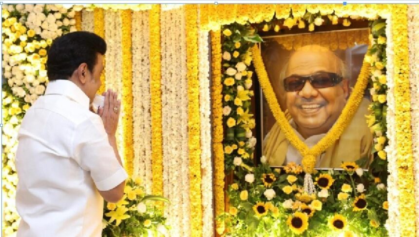 முன்னதாக, காலை சென்னை கோபாலபுரம் இல்லத்தில், கருணாநிதி திருஉருவ படத்துக்கு முதல்வர் மு.க.ஸ்டாலின் மரியாதை செலுத்தினார். தொடர்ந்து சென்னை ஓமந்தூரார் தோட்டத்தில் உள்ள கருணாநிதி சிலைக்கு முதல்வர் ஸ்டாலின் உள்ளிட்டோர் மாலை அணிவித்து மரியாதை செலுத்தினர். அதன்பின்னரே, மெரினா நினைவிடத்துக்குச் சென்றார். தொடர்ந்து சென்னை கோடம்பாக்கத்தில் உள்ள முரசொலி அலுவலகத்தில் ‘தமிழினத் தலைவர் கலைஞர் நூற்றாண்டு நிறைவு மலர் – 2024’ என்ற புத்தகத்தை முதல்வர் ஸ்டாலின் வெளியிட்டார். முதல்வர் ஸ்டாலின் வெளியிட்டபுத்தகத்தை