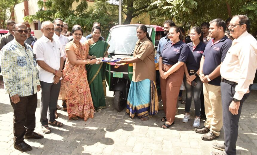 மதுரை மாவட்ட ஆட்சியர் அலுவலக வளாகத்தில் மாவட்டம் 3000 ரோட்டரி கிளப் மூலம் பொருளாதாரத்தில் பின்தங்கிய கணவன்களை இழந்த பெண்களுக்கு இ.ஆட்டோக்களுக்கான சாவியை மாவட்ட ஆட்சித்தலைவர் மா.சௌ.சங்கீதா வழங்கினார். முன்னாள் மாவட்ட ஆளுநர்கள் ஆனந்தஜோதி, கண்ணன் ஆகியோர் உடன் உள்ளனர்.
