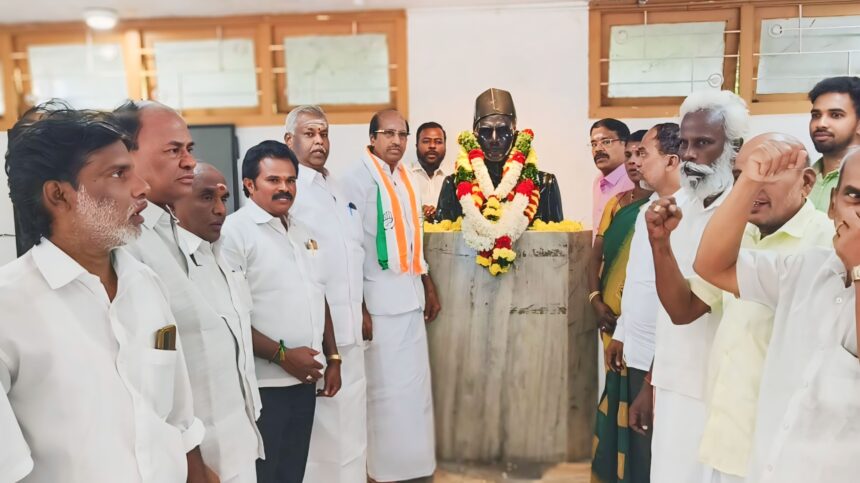மாலை அணிவித்தும் மலர் தூவையும் மாநகர மாவட்ட தலைவர் ஆர் கிருஷ்ணன் தலைமையில் மரியாதை செலுத்தப்பட்டது நிகழ்வில்