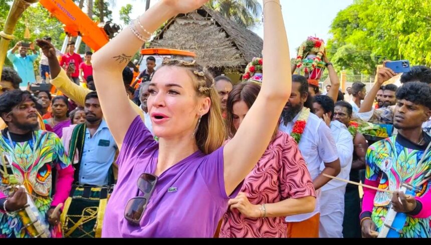ஆசியாவிலேயே உயரமான 54அடி உயரம் உள்ள சிவலிங்கத்திற்கு, பிராண பிரதிஷ்டை கும்பாபிஷேக விழா , ரஷ்யா ஜெர்மனி கஜகஸ்தான் உள்ளிட்ட பத்து நாடுகளை சார்ந்த வெளிநாட்டவர்கள், பக்தி பரவசத்துடன் நடனமாடி தரிசனம் செய்தனர்.
