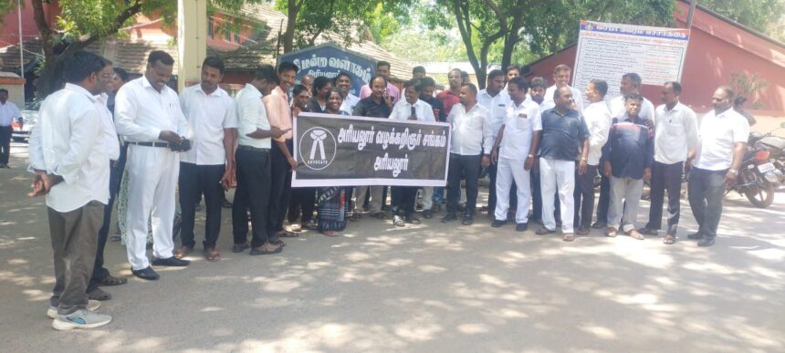 மத்திய அரசு கொண்டுவந்துள்ள 3 புதிய குற்றறவியல் சட்டங்களை திரும்பப் பெற வலியுறுத்தி ஜூலை 1 முதல் நீதிமன்றப் பணிகளைப் புறக்கணித்து அரியலூர் வழக்கறிஞர்கள் சங்கத்தினர் தொடர் போராட்டத்தில் ஈடுபட்டு வருகின்றனர். அதன்படி புதன்கிழமை ஜி.எஸ்.டி அலுவலகத்தை முற்றுக்கையிட்டு போராட்டத்தில் ஈடுபட்டனர். முன்னதாக அவர்கள் அரியலூர் ஒருங்கிணைந்த நீதிமன்ற அலுவலகம் முன்பு ஆர்ப்பாட்டத்தில் ஈடுபட்டனர்