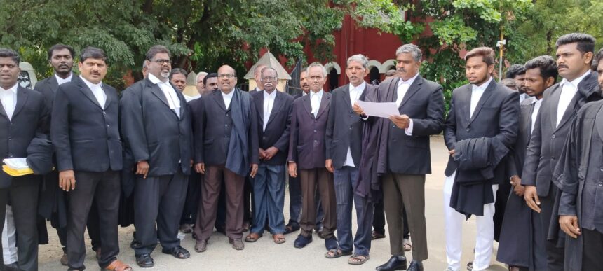 புதிய சட்ட அமலாக்கத்தை நிறுத்திட வலியுறுத்தி வழக்கறிஞர்கள் ஆர்ப்பாட்டம் நடைபெற்றது.