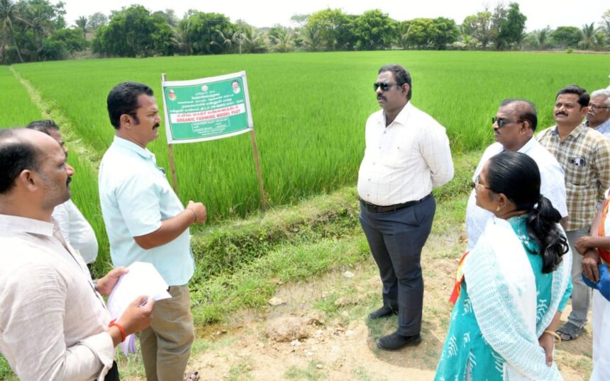 கிருஷ்ணகிரி மாவட்டம், கெலமங்கலம் ஊராட்சி ஒன்றியம், ஜெக்கேரி கிராமத்தில், வேளாண்மைத்துறை சார்பாக, விவசாயி.இராமேஷ்பாபு த/பெ. காசப்பா அவர்கள், முதலமைச்சரின் மண்ணுயிர் காத்து மன்னுயிர் காப்போம் திட்டத்தின் கீழ், உயிர்ம மாதிரி பண்ணைத்திடல் அமைத்து பாரம்பரிய நெல் இரகமான தூயமல்லி நெல் விதையினை ரூ.10,000 (முழு மானியம்) மானிய விலையில் பெற்று சாகுபடி செய்யப்பட்டுள்ளதை மாவட்ட ஆட்சித்தலைவர் .ச.தினேஷ் குமார் , அவர்கள நேரில் பார்வையிட்டு ஆய்வு மேற்கொண்டார். உடன், வேளாண்மைத்துறை உதவி இயக்குநர் திரு. ஜான் லூர்து சேவியர் உள்ளிட்ட பலர் உள்ளனர்.