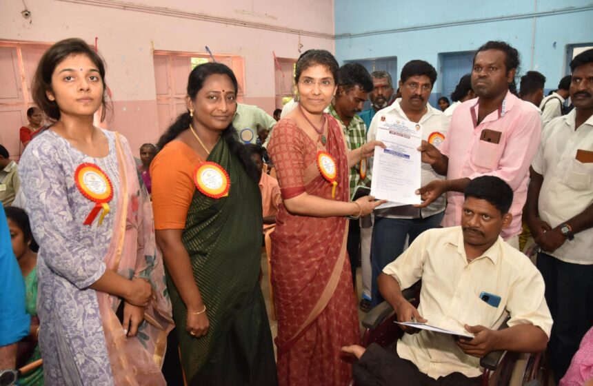 மதுரை மாவட்டம் அமெரிக்கன் கல்லூரியில் நடைபெறும் மாற்றுத்திறனாளிகள் நலத்துறை, வேலை வாய்ப்பு மற்றும் தொழில் வழிகாட்டும் மையம் திறன் மேம்பாட்டு கழகத்தின் மண்டல அளவில் மாற்றுத்திறனாளிகளுக்கான தனியார் துறை வேலைவாய்ப்பு மற்றும் தொழில் பயிற்சி முகாமினை மாற்றுத்திறனாளிகள் நலத்துறை அரசு செயலாளர் சிஜி தாமஸ் வைத்யன் துவக்கி வைத்து பார்வையிட்டு பணி நியமன ஆணைகளை வழங்கினார். மதுரை மாவட்ட ஆட்சித்தலைவர் மா.சௌ.சங்கீதா உதவி ஆட்சியர் (பயிற்சி) வைஷ்ணவி பால் ஆகியோர் உடன் உள்ளார்.