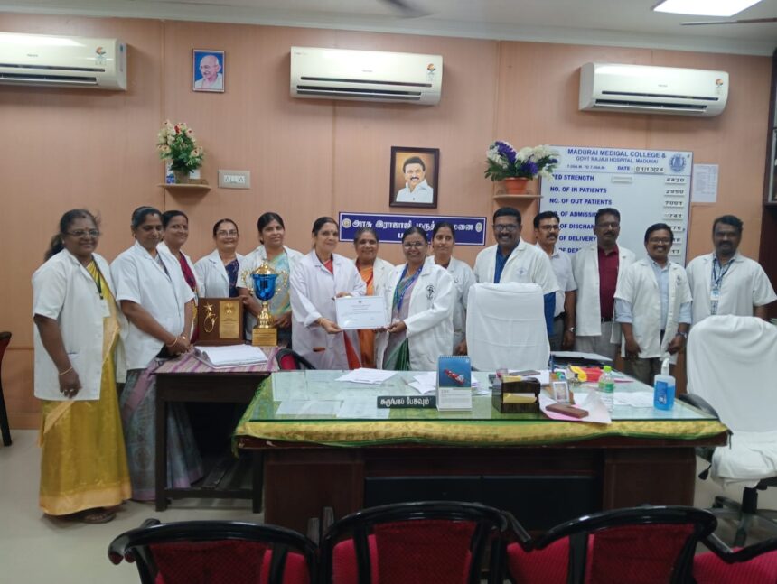 தமிழ்நாடு மக்கள் நல வாழ்வு அமைச்சர் ம.சுப்பிரமணியன்  பாராட்டுச் சான்றிதழ் வழங்கினார். மருத்துவ கல்வி இயக்குநர் மருத்துவர் சங்குமணி உடனிருந்தார். சிறந்த கல்லூரியாக தேர்ந்து எடுக்கப்பட்ட செவிலியர் கல்லூரி முதல்வர் ஆசிரியர்கள் மற்றும் மாணவர்களை, மதுரை மருத்துவக் கல்லூரி முதல்வர் (பொறுப்பு) மருத்துவர் செல்வராணி  வெகுவாக பாராட்டினார்