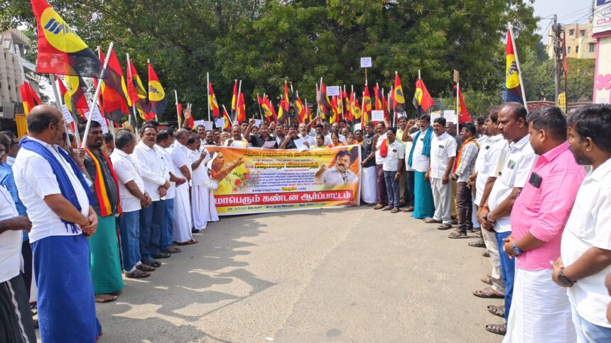ஆர் குழந்தைவேல். தலைமையில் மாபெரும் கண்டன ஆர்ப்பாட்டம் திருப்பூர் குமரன் சிலை முன்பு நடைபெற்றது. இந்த ஆர்ப்பாட்டத்தில்