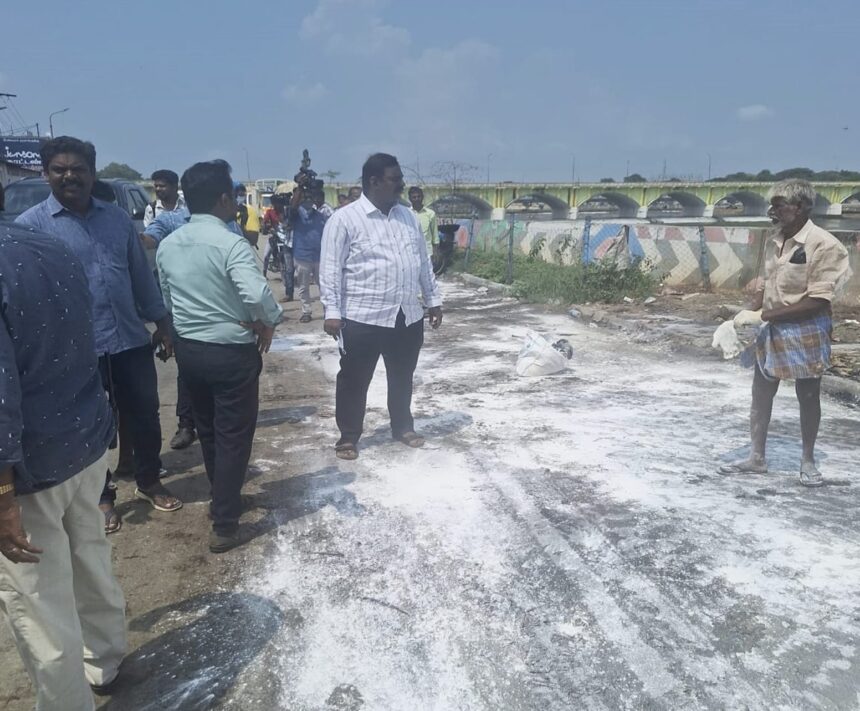 மதுரை நெல்பேட்டை பகுதியில் அமைந்துள்ள இறைச்சி கடைகளில் தீபாவளி பண்டிகை முன்னிட்டு அதிகளவிற்கான விற்பனை நடைபெற்ற நிலையில் அங்குள்ள இறைச்சி கடைகளில் விற்பனை செய்யப்பட்ட இறைச்சி கழிவுகள் முழுவதுமாக வைகையாற்று கரையோர சாலையில் மலை போல குவித்து வைக்கப்பட்டது. இதனால் கரையோர சாலையில் முழுவதிலும் கடும் துர்நாற்றம் வீசியதால் பொதுமக்கள் நடமாடக்கூட முடியாத பகுதியாக மாறியது. மதுரை மாநகராட்சி வைகை தென்கரை சாலை பகுதியில் இறைச்சி கழிவுகளை கொட்டியதாக புகார் வந்ததன் அடிப்படையில் நெல்பேட்டை பகுதிகளில் இறைச்சி கழிவுகளை சாலையோரத்தில் கொட்டப்பட்ட பகுதியில் நேரடியாக ஆய்வு மேற்கொண்ட மாநகராட்சி ஆணையாளர் தினேஷ்குமார் உத்தரவின்படி பொக்லைன் இயந்திர மூலமாக இறைச்சி கழிவுகள்