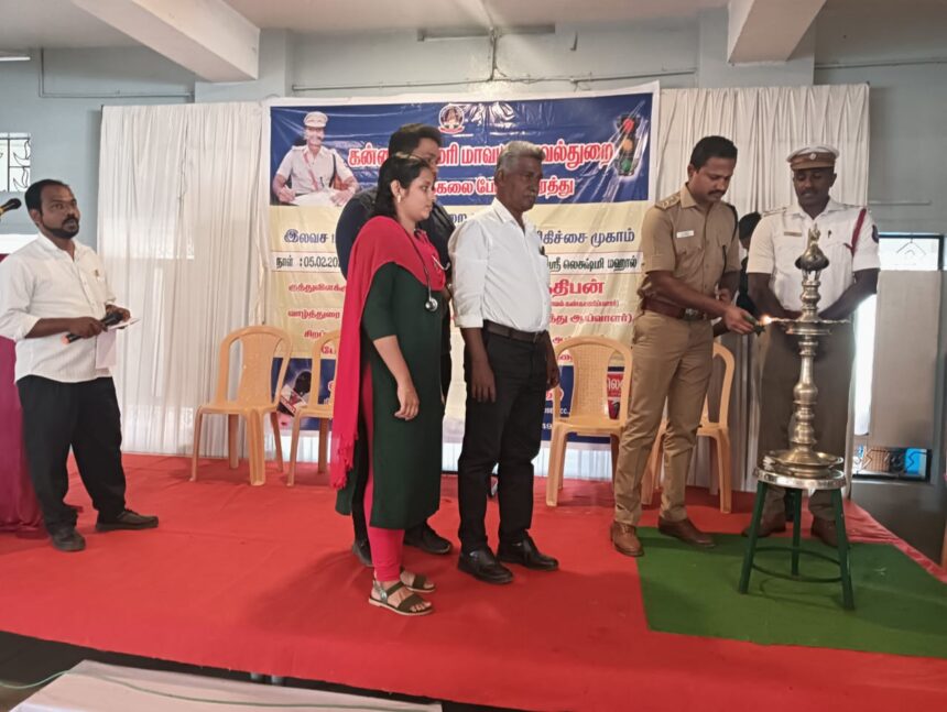 கன்னியாகுமரி மாவட்ட காவல் கண்காணிப்பாளர் ஸ்டாலின் உத்தரவின் பேரில் தக்கலை உட்கோட்ட காவல் துணை கண்காணிப்பாளர் பார்த்திபன் மேற்பார்வையில் பத்மநாபபுரம் போக்குவரத்து காவல் ஆய்வாளர் அருண் தலைமையில் தக்கலையில் வாகன ஓட்டுநர்கள் மற்றும் ஓட்டுநர்களின் குடும்பத்தினருக்கு இலவச மருத்துவ மற்றும் கண் பரிசோதனை முகாம் நடைபெற்றது.இதில் தக்கலை காவல்துணைக் கண்காணிப்பாளர் பார்த்திபன் வாகன ஓட்டுநர்களுக்கு விழிப்புணர்வு வழங்கி இலவச மருத்துவ மற்றும் கண் பரிசோதனையை துவங்கி வைத்தார். இந்நிகழ்வில் ஏராளமான ஓட்டுநர்கள் கலந்து கொண்டு பயனடைந்தனர்.
