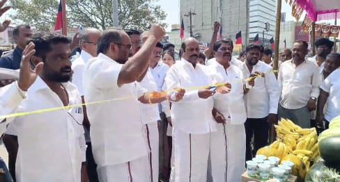 நகர இளைஞரணி துணை அமைப்பாளர் ஐயப்பன் ஏற்பாட்டில் நெடுஞ்சாலை துறை அமைச்சர் எவ.வேலு நீர் மோர் பந்தலை ரிப்பன் வெட்டி திறந்து வைத்தார்.
