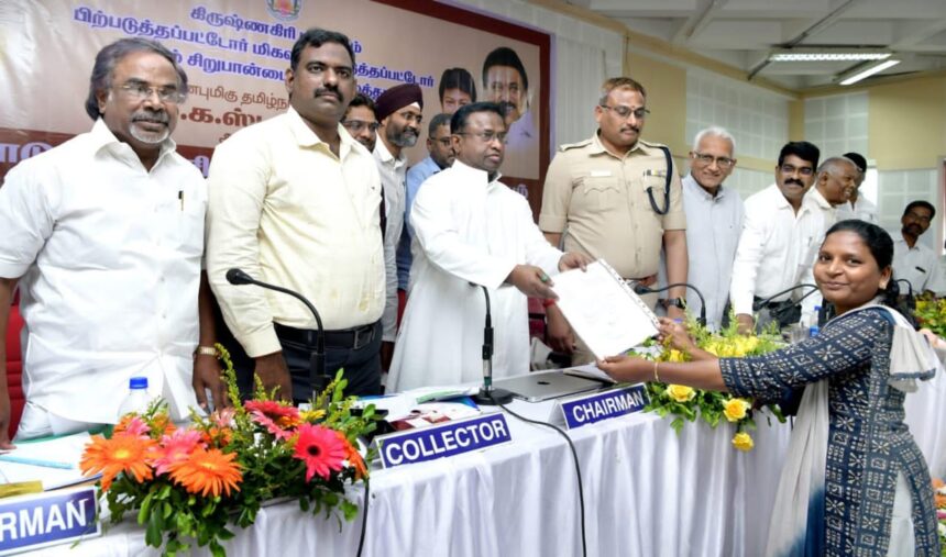 கிருஷ்ணகிரி மாவட்ட ஆட்சியர் அலுவலக கூட்டரங்கில், பிற்படுத்தப்பட்டோர் மிகவும் பிற்படுத்தப்பட்டோர் மற்றும் சிறுபான்மையினர் நலத்துறை சார்பாக, தமிழ்நாடு மாநில சிறுபான்மையினர் ஆணைய கலந்துரையாடல் கூட்டத்தில், தமிழ்நாடு மாநில சிறுபான்மையினர் ஆணையத்தின் தலைவர் அருட்தந்தை சொ.ஜோ.அருண் சேச அவர்கள் பர்கூர் வட்டம், நாகம்பட்டி கிராமத்தில், தேவாலயம் நடத்த தடையின்மை சான்றிதழை வழங்கினார்.