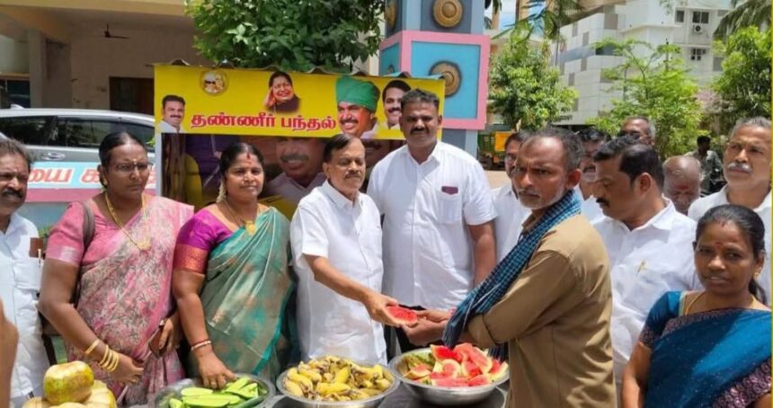 தோவாளை தெற்கு ஒன்றியம் செயலாளரும், ஆரல்வாய்மொழி சிறப்பு நிலை பேரூராட்சி மன்ற தலைவருமான சி. முத்துக்குமார் ஏற்பாட்டின் பேரில் நீர் மோர் பந்தல் அமைக்கப்பட்டது. இதனை நேற்று