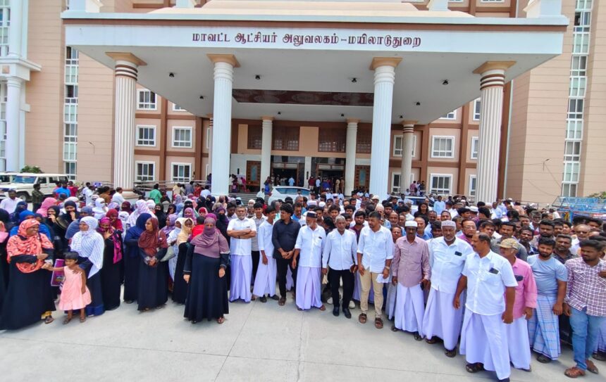 சீர்காழி அருகே கடந்த ஜனவரி மாதம் 28ஆம் தேதி தேசிய புலனாய்வு முகமை அதிகாரிகள் சோதனை மேற்கொண்ட விவகாரம் சம்மன் அனுப்பி விசாரணை மேற்கொள்ளும் அதிகாரிகள் கேட்காத மற்றும் பார்க்காத சம்பவங்களை ஒப்புக்கொள்ள சொல்லி மிரட்டுவதாக மயிலாடுதுறை மாவட்ட ஆட்சியர் மக்கள் குறைதீர் கூட்டத்தில் இஸ்லாமிய கூட்டமைப்பு சார்பாக 300க்கு மேற்பட்டோர் மனு:-
