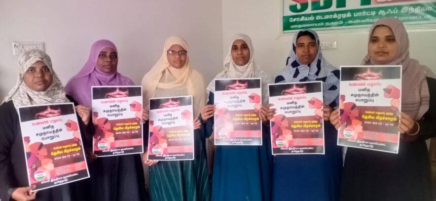 கட்சியின் மாவட்டத் தலைவர் சத்தார் அலி, விமன் இந்தியா மூவ்மெண்ட் -ன் மாநில செயலாளர் ரஹ்மத் நிஷா ஆகியோர் கலந்துகொண்டனர். இக்கூட்டத்தில் மாவட்ட செயற்குழு உறுப்பினர் பஸ்ரியா சாகுல் வரவேற்புரை ஆற்றினார். பெண்களின் பாதுகாப்பு சமூகத்தின் பொறுப்பு என்ற போஸ்டர் வெளியிடப்பட்டது. அக்டோபர் 2 முதல் டிசம்பர் 2 வரை பெண்களின் பாதுகாப்பு சமூகத்தின் பொறுப்பு என்ற தலைப்பில் அகில இந்திய பிரச்சாரம் தொடர்பான தீர்மானங்கள் நிறைவேற்றப்பட்டன. அக்டோபர் 2 முதல் நவம்பர் 10 வரை அனைத்து மாவட்டங்களிலும் நோட்டீஸ் மற்றும் போஸ்டர் விநியோகம் செய்ய வேண்டும் என்றும் கருத்தரங்கம் நடத்த வேண்டும் என்றும் தீர்மானிக்கப்பட்டது.