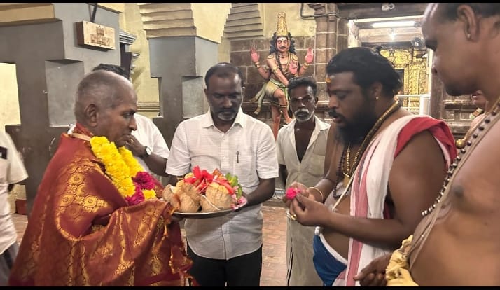 இவ்வாறு சிறப்பு மிக்க இந்த கோவிலில் இசையமைப்பாளர் இளையராஜா கோவிலுக்கு வருகை புரிந்தார் அப்போது கோவில் நிர்வாக மேலாளர் வள்ளிகந்தன் மற்றும் கோவில் தலைமை சிவாச்சாரியார் ஆகியோர் வரவேற்றனர்.