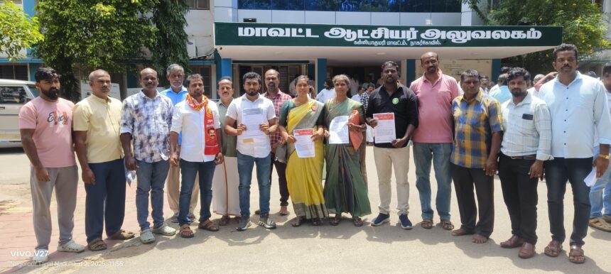 குமரி மாவட்டம் குளச்சல் நாம் தமிழர் கட்சியை சேர்ந்த மாவட்டத் தலைவர் ஆனறலின் சுஜித் தலைமையில் குளச்சல் மகளிர் பாசறை செயலாளர் அன்ஸி சோபா ராணி, மாநில இளைஞர் பாசறை செயலாளர் ஹிம்லர், குளச்சல் வடக்கு தொகுதி செயலாளர் அனந்தேஸ்வரன் நுள்ளி விலை ஊராட்சி செயலாளர்கள் டெலிக்ஸ், அசோக் ஆகியோர் முன்னிலையில் மாவட்ட ஆட்சியரை சந்தித்து மனு அளித்தனர். அந்த மனுவில் கூறப்பட்டுள்ளதாவது :-