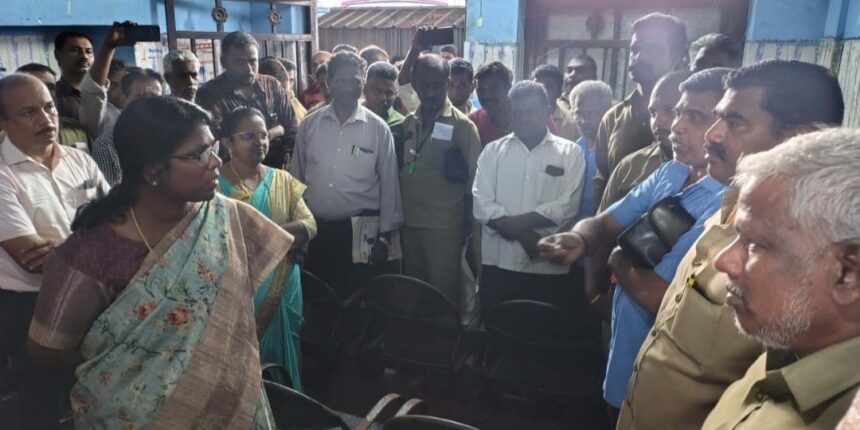 கன்னியாகுமரி மாவட்டம் நாகர்கோவில் அண்ணா பேருந்து நிலையத்தில் 05.12.2024 போக்குவரத்து கழக பணியாளர்கள் தாங்கள் பயன்படுத்தும் கழிவறை வாயிலை மாநகராட்சியிலிருந்து அடைத்து விட்டனர் என்பதற்காக பேருந்துகளை இயக்காமல் மறியல் போராட்டம் நடத்தினார்கள்.