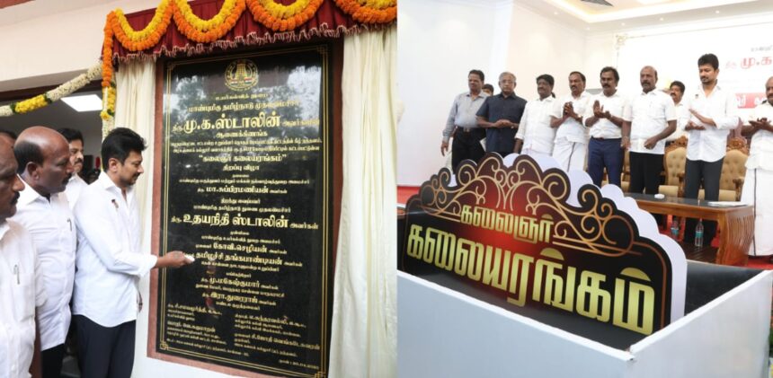 முத்தமிழறிஞர் கலைஞர் அவர்களால் தொடங்கப்பட்ட நந்தனம் அரசு கலைக்கல்லூரியில், முதலமைச்சர் மு.க.ஸ்டாலின் வழிகாட்டுதலின் கீழ், அமைச்சர் மா.சுப்பிரமணியன் அவர்கள் தொகுதி மேம்பாட்டு நிதியில் ரூ.4.80 கோடி செலவில் கட்டப்பட்டுள்ள ‘கலைஞர் கலையரங்கம்’ இன்று சிறப்பாக திறந்து வைக்கப்பட்டது.