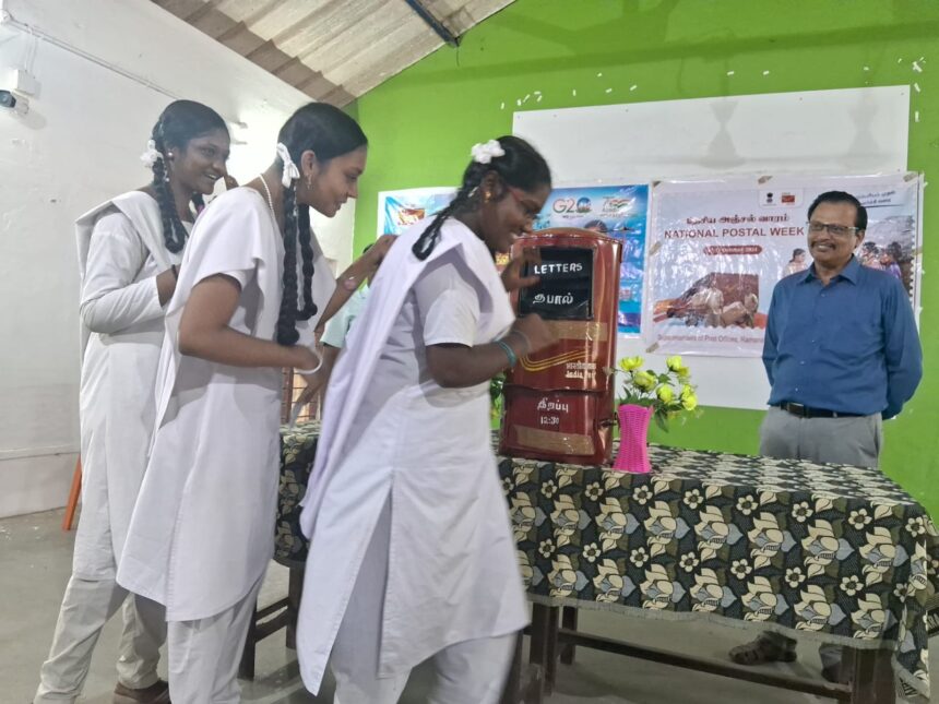 தேசிய அஞ்சல் வாரத்தினை ஒட்டி இரண்டாம் நாளான நேற்று முன்தினம் செய்யது அம்மாள் மேல்நிலைப் பள்ளியில் தபால் தலை சேகரிப்பு மற்றும் கடிதம் எழுதுவதில் மகிழ்ச்சி டிஜிட்டல் இந்தியாவில் கடிதம் எழுதும் போட்டி நடைபெற்றது.