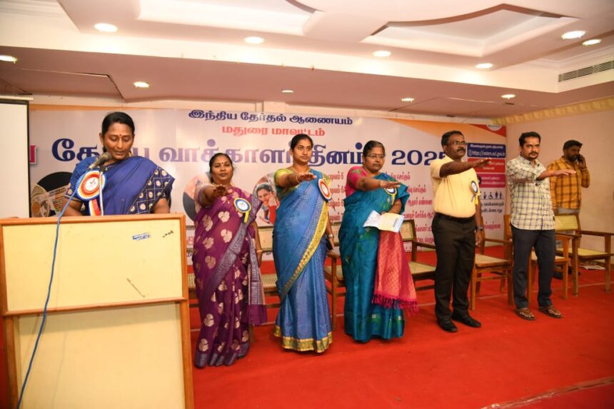 மதுரையில் தேசிய வாக்காளர் தின விழா மதுரை மாவட்ட ஆட்சியர் தலைமையில் நடைபெற்றது.