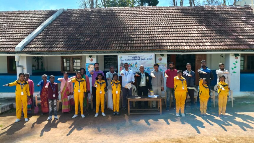 நீலகிரி மாவட்டம் கோத்தகிரி அருகே ஒரசோலை ஊராட்சி ஒன்றிய நடுநிலைப் பள்ளியில் இன்று பள்ளி தலைமை ஆசிரியர்  நஞ்சுண்டன் தலைமையில் தேசிய வாக்காளர் நாள் உறுதிமொழி எடுக்கப்பட்டது.