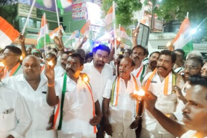 தென்காசி மாவட்டம் சுரண்டையில் பாஜக அரசை கண்டித்து காங்கிரஸ் கட்சியினர் மெழுகுவர்த்தி ஏந்தி ஊர்வலம்