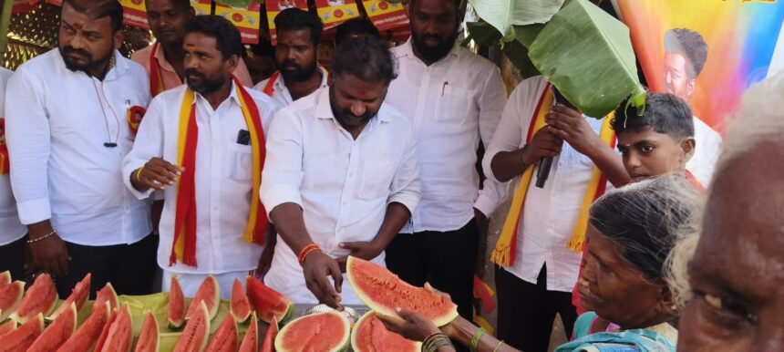 இதில், தமிழக வெற்றி கழகம் கட்சியின் காஞ்சிபுரம் மாவட்ட செயலாளர் எஸ்.பி.கே. தென்னரசு சிறப்பு அழைப்பாளராக கலந்து கொண்டு பொதுமக்களுக்கு, தர்பூசணி, ஜுஸ், மோர் உள்ளிட்டவைகளை வழங்கினர்.