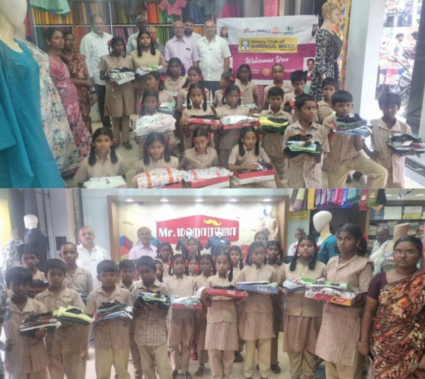 திண்டுக்கல் மேற்கு ரோட்டரி சங்கம் சார்பாக தென்னம்பட்டி அரசு பள்ளி 7 மாணவர்கள் , 14 மாணவிகள் என மொத்தம் 21 பேர்களை வேன் மூலம் திண்டுக்கல்லுக்கு அழைத்து வரப்பட்டு தீபாவளி பண்டிகையை முன்னிட்டு புத்தாடைகள், பட்டாசுகள், மாணவியர்களுக்கு அலங்காரப் பொருட்கள் என மொத்தம் ரூபாய் 55000 மதிப்பில் பொருட்களை ரோட்டேரியன் பி.ஏ.பி. நாதன் வழங்கினார். இந்நிகழ்ச்சிக்கு திண்டுக்கல் மேற்கு ரோட்டரி சங்கத்தின் தலைவர் ஹெச். புருசோத்தமன் தலைமை தாங்கினார். மேற்கு ரோட்டரி சங்கத்தின் செயலாளர்