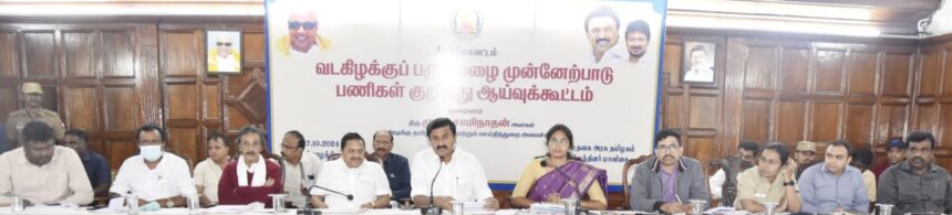 ஊட்டி தமிழகம் மாளிகையில் வடகிழக்கு பருவமழை தடுப்பு குறித்து செய்தி துறை அமைச்சர் மு.பெ. சாமிநாதன். தலைமையில்
