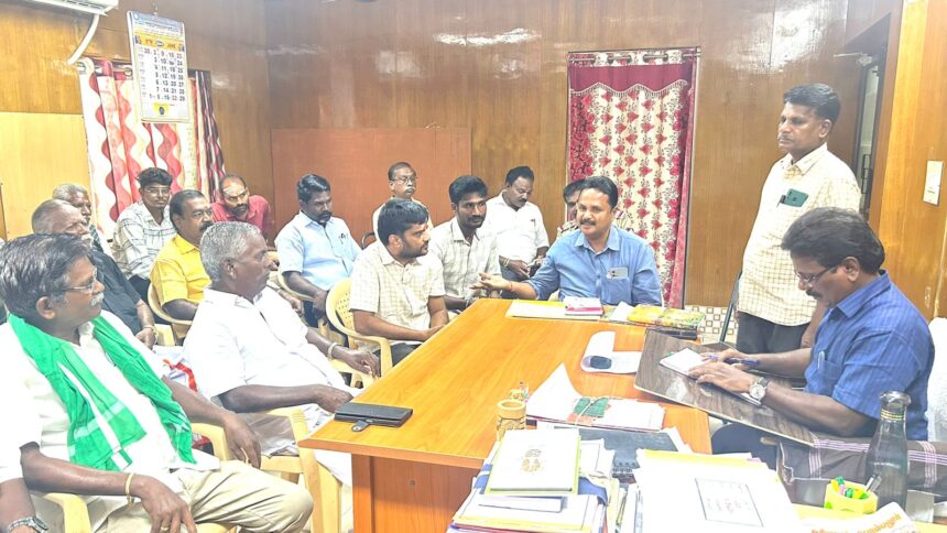 அரியலூர் மாவட்டம்,செந்துறை அருகே கோட்டைக்காடு வெள்ளாற்றில் அணுகு சாலை அமைக்கக் கோரிய கூட்டமைப்பு நிருவாகிகள், நெடுஞ்சாலைத் துறை அதிகாரிகள் மற்றும் ஒப்பந்ததாரர்கள் அமைதிப்பேசுவார்த்தை நேற்று காலை 10 மணிக்கு செந்துரை வட்டாட்சியர் அலுவலகத்தில், வட்டாட்சியர் வேலுமணி தலைமையில் நடைபெற்றது.