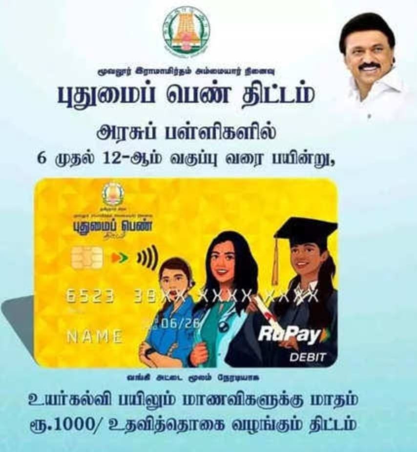 தமிழகத்தில் உள்ள அரசுப் பள்ளிகளில் 6 முதல் 12 ஆம் வகுப்பு வரை படித்து, தமிழகத்திலேயே உயா்கல்வியைத் தொடரும் மாணவிகளுக்கு இத் திட்டத்தில் மாதம் ரூ.1000 உதவித் தொகை வழங்கப்படும்.புதிய அரசாணையின்படி 2024-25 ஆம் கல்வி ஆண்டு முதல், தமிழகத்தில் அரசு உதவி பெறும் பள்ளிகளில் தமிழ் வழிக் கல்வி பயின்று மேற்படிப்பில் சேரும் அனைத்து மாணவிகளும் இந்த திட்டத்தில் பயன்பெறும் வகையில் இத் திட்டம் விரிவுபடுத்தப்பட்டுள்ளது.