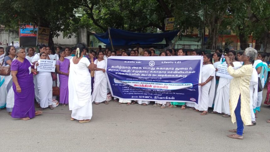மக்கள் தொகைக்கு ஏற்ப புதியதாக உருவாக்கப்பட உள்ள துணை சுகாதார நிலையங்களில் எம்.எல்.எச்.பி செவிலியர்களை பணியமர்த்தும் கருத்துருவை கைவிட்டு, கிராம சுகாதார செவிலியர்களை பணி நியமனம் செய்ய வேண்டும். களப் பணிகளை ஆய்வு செய்து அறிக்கை சமர்ப்பிக்க சமுதாய சுகாதார செவிலியர்களுக்கு மடிக்கணினி வழங்க வேண்டும். அதே போல் பழுதடைந்த கணினியை மாற்றி புதிய மடிக்கணினியும், கிராம, பகுதி, சமுதாய சுகாதார செவிலியர்களுக்கு ஆன்ட்ராய்டு கைப்பேசிகளை வழங்கிட வேண்டும் என்பன உள்ளிட்ட கோரிக்கைகள் வலியுறுத்தப்பட்டன.