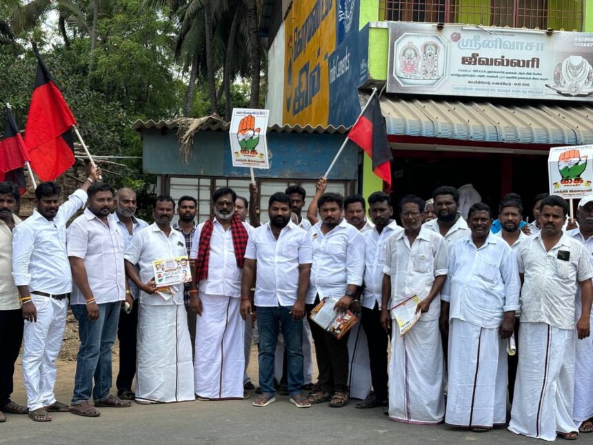 மயிலாடுதுறையில் திமுக சார்பில் களத்தில் இளைஞரணி நிகழ்ச்சி; திமுக அரசின் சாதனைகளை விளக்கிக் கூறும் வகையில் நூற்றுக்கும் மேற்பட்ட இளைஞர்கள் வீடு வீடாக சென்று துண்டு பிரசுரம் விநியோகம்:-