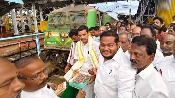 திருச்சியில் இருந்து வெள்ளிக்கி ழமை காலை 5:35மணிக்கு புறப்பட்ட இந்த ரெயில் காலை 6 25 மணிக்கு தஞ்சாவூருக்கு வந்தது அப்போது மக்களவை உறுப்பினர் முரசொலி தலைமையில் பயணி கள் வரவேற்பு அளித்தனர் .மேலும் ரெயிலை ஓட்டி வந்த ஓட்டுனருக்கு முரசொலி பொன்னாடை அணிவி த்து இனிப்பு வழங்கினார். தொடர்ந்து பயணிகள் உள்ளிட்ட அனைவருக்கும் இனிப்புகள் வழங்கப்பட்டன. இதையடுத்து ரெயிலை மக்களவை உறுப்பினர் கொடியசைத்து அனுப்பி வைத்தார்.