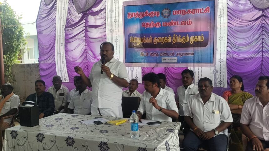 தூத்துக்குடி மாநகராட்சிக்குட்பட்ட பகுதிகளில் வாரம் தோறும் மண்டல வாரியாக மக்கள் குறைதீர்க்கும் முகாம் நடைபெற்று வருகிறது.   அதன்படி