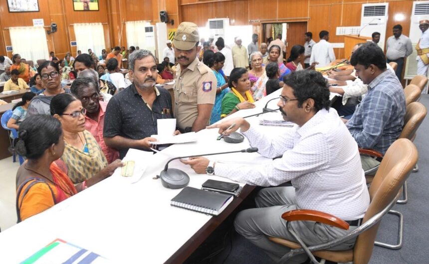 இதையடுத்து இன்று காலை மாவட்ட ஆட்சியர் அலுவலகத்தில் மக்கள் குறைதீர்க்கும் நாள் கூட்டம் நடைபெற்றது. இதில் மாவட்டத்தின் பல்வேறு பகுதிகளில் இருந்து வந்த பொதுமக்கள் கோரிக்கை மனுக்களை அளித்தனர். மனுக்களை பெற்றுக் கொண்ட மாவட்ட ஆட்சியர் லட்சுமிபதி சம்பந்தப்பட்ட துறை அதிகாரிகளிடம் மனுவை வழங்கி உடனடியாக நடவடிக்கை எடுக்க உத்தரவிட்டார்.உடன்மாவட்ட வருவாய் அலுவலர் அஜய் சினிவாசன்