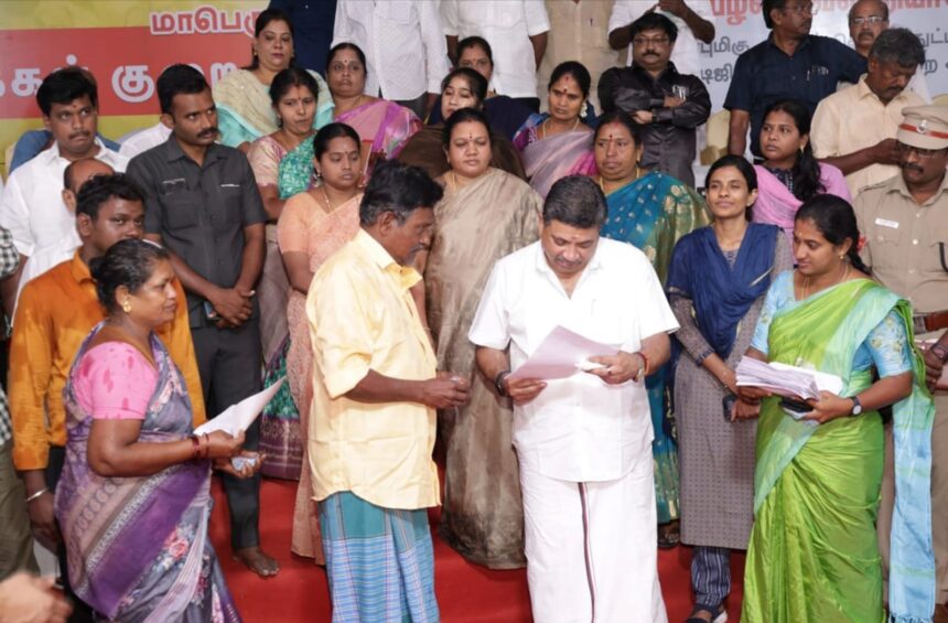 மதுரை மாநகராட்சி மத்திய சட்டமன்ற தொகுதிக்கு உட்பட்ட மதுரை கல்லூரி மைதானத்தில் நடைபெற்ற சிறப்பு குறைதீர்க்கும் முகாமில் தகவல் தொழில்நுட்பவியல் மற்றும் டிஜிட்டல் சேவைகள் துறை அமைச்சர் முனைவர் பழனிவேல் தியாகராஜன் பொதுமக்களிடமிருந்து கோரிக்கை மனுக்களை பெற்றுக் கொண்டார். மாநகராட்சி மேயர் இந்திராணி பொன்வசந்த், ஆணையாளர் சித்ரா விஜயன், வருவாய் கோட்டாட்சியர் ஷாலினி, மண்டலத் தலைவர்கள் பாண்டிச்செல்வி, சரவண புவனேஸ்வரி, மாமன்ற உறுப்பினர் ராஜ்பிரதாபன் மற்றும் அரசு அலுவலர்கள் ஆகியோர் கலந்து கொண்டனர்.