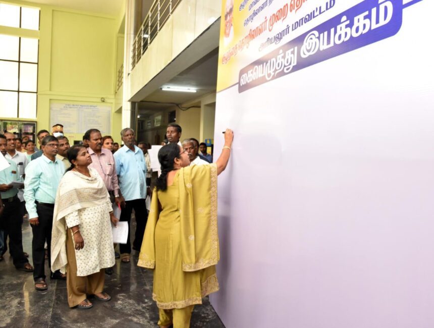தொடர்ந்து குழந்தை தொழிலாளர் முறை ஒழிப்பு தின கையெழுத்து இயக்கத்தினை மாவட்ட ஆட்சித்தலைவர் கையொப்பமிட்டு துவக்கி வைத்து தெரிவித்ததாவது:
