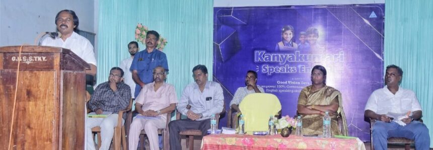 கன்னியாகுமரி மாவட்டம் தக்கலை அரசுப்பள்ளி கலையரங்கில் நேற்று நடைபெற்ற நிகழ்ச்சியில் 4ம் வகுப்பு முதல் 8ம் வகுப்பு வரையிலான மாணவ மாணவியர்களுக்கு நடத்தப்பட்ட ஆங்கில கற்றல் பயிற்சி முகாமானது மாவட்ட ஆட்சித்தலைவர் அழகுமீனா, தலைமையில் நடைபெற்றது. இம்முகாமில் பால்வளத்துறை அமைச்சர் மனோ தங்கராஜ் கலந்து கொண்டு, மாணவ மாணவியர்களை பாராட்டி பேசுகையில்-