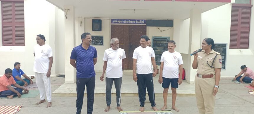 மயிலாடுதுறையில் காவல்துறையினருக்கு பணிச்சுமையால் ஏற்படும் மன அழுத்தத்தை போக்குவதற்கான நடவடிக்கையில் மாவட்ட காவல்துறை ஈடுபட்டுள்ளது. அந்த வகையில் மயிலாடுதுறை காவல் உபகோட்ட எல்லைக்கு உட்பட்ட மயிலாடுதுறை, செம்பனார்கோயில், பெரம்பூர், குத்தாலம், பாலையூர், மணல்மேடு, பாகசாலை மற்றும் அனைத்து மகளிர் காவல் நிலையத்தில் பணியாற்றும் காவல் ஆய்வாளர்கள் மற்றும் காவல்துறையினருக்கு யோகா பயிற்சி வழங்கப்பட்டது. இந்த பயிற்சியை மயிலாடுதுறையில் 40 ஆண்டுகளாக இலவசமாக யோகா பயிற்சி அளித்து வரும் பதஞ்சலி யோகா பயிற்சி மையத்தின் குரு டி.எஸ்ஆர்.கணேசன் போலீசாருக்கு பயிற்சி அளித்தார். இதில் தியானம், மூச்சுப் பயிற்சி, சூரிய நமஸ்காரம் ஆகிய பயிற்சிகளும், சர்வங்காசனம் உள்ளிட்ட யோகா பயிற்சிகளும் வழங்கப்பட்டன. வார இறுதி நாளான சனிக்கிழமையில் வழங்கப்படும் இந்த பயிற்சி தங்களுக்கு புத்துணர்ச்சியை ஏற்படுத்துவதாக போலீசார் தெரிவித்தனர்.