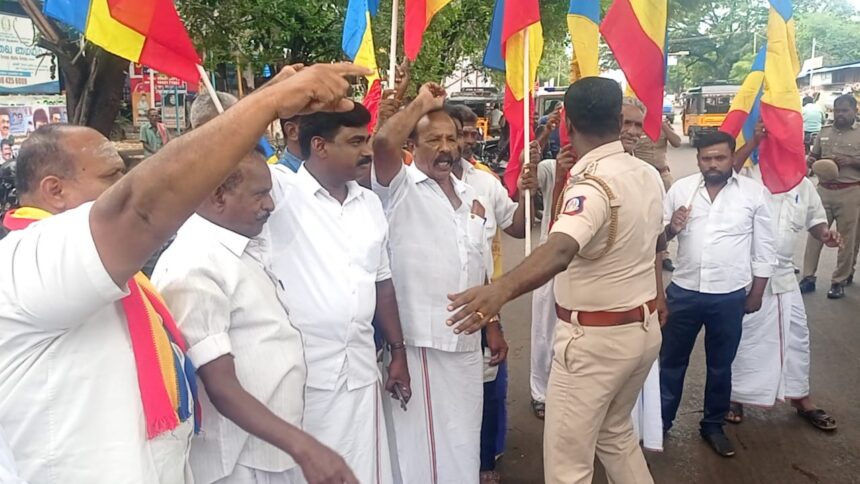 இதனிடையே அனுமதி இல்லாமல் போராட்டத்தில் ஈடுபட்டதாக கூறி பாட்டாளி மக்கள் கட்சியினர் 20 க்கும் மேற்பட்டோரை தென்காசி காவல் துறையினர் கைது செய்து தனியார் திருமண மண்டபத்தில் அடைத்தனர்.