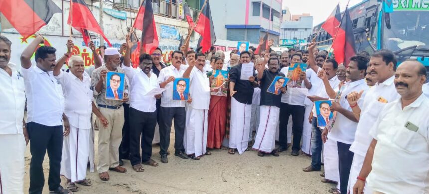 உள்ளிட்ட நகர மன்ற உறுப்பினர்கள் கிளை கழகச் செயலாளர்கள் அனைத்து அணியைச் சேர்ந்த நிர்வாகிகள் கலந்து கொண்டு கண்டன கோஷங்களை எழுப்பினர்.