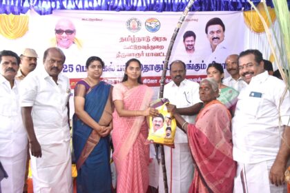 மாற்றுத்திறனாளிகள் நலத்துறை சார்பாக, 10 மாற்றுத்திறனாளிகளுக்கு, ரூ.2 இலட்சத்து 63 ஆயிரத்து 872 மதிப்பில் மின்கலம் பொருத்தப்பட்ட சக்கர நாற்காலிகள் மற்றும் இலவச தையல் இயந்திரங்களை மாவட்ட ஆட்சித்தலைவர் .ச.தினேஷ் குமார் , அவர்கள் வழங்கினார்.