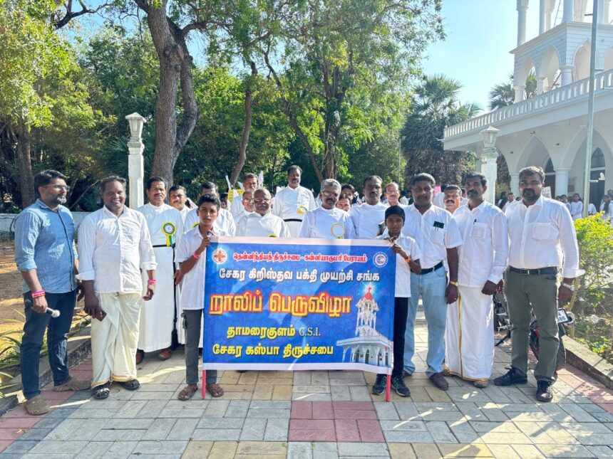 தென்தாமரைகுளம்., பிப். 5.தாமரைகுளம் சி.எஸ்.ஐ சேகர கஸ்பா ஆலயத்தில் சேகர கிறிஸ்தவ பக்திமுயற்சி சங்க றாலி பெருவிழா நடைபெற்றது. இதில் சேகரத்திற்குட்பட்ட 9 திருச்சபைகளில் இருந்தும் 600 க்கும் மேற்பட்டோர் கலந்து கொண்டனர்.