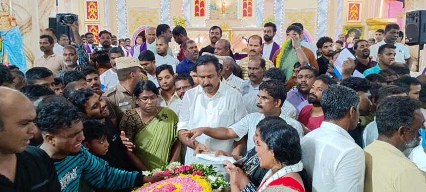 மைக்கேல் பின்ற(42) ஆகியோர் உயிரிழந்தனர். அந்த குடும்பங்களுக்கு உடனடியாக முதலமைச்சரின் கவனத்திற்கு கொண்டு சென்று தமிழ்நாடு அரசின் சார்பில் ரூ. 5 லட்சம் ரூபாய் பெற்றுக் கொடுத்து, நேற்று அவர்களின் இறுதி சடங்கு நிகழ்ச்சிகளில் கலந்து கொண்டு, அவர்களது குடும்பத்தினரை நேரில் சந்தித்து ஆறுதல் கூறினார். தொடர்ந்து உயிரிழந்த நான்கு பேரின் குடும்பங்களுக்கும் தனது சொந்த நிதியிலிருந்து தலா ரூ. 1 லட்சம் ரூபாய் வீதம் நிவாரண தொகை வழங்கினார்.