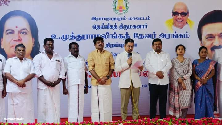 ராமநாதபுரம் மாவட்டம் கமுதி வட்டம் பசும்பொன் கிராமத்தில் 1−கோடியே 52−லட்சத்து−32  ஆயிரம் ரூபாய் மதிப்பீட்டில் புதியதாக அமைக்கப்பட்டுள்ள  பசும்பொன் உ.முத்துராமலிங்கதேவர் அரங்கத்தினை,மாண்புமிகு தமிழ்நாடு முதல்வர் .மு.க.ஸ்டாலின் அவர்கள் காணொளி காட்சி மூலம் திறந்து வைத்தார்!