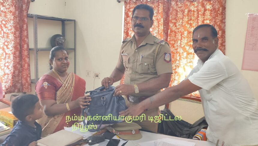 குமரி மாவட்டம் நாகர்கோவிலை சேர்ந்த வள்ளி என்பவர் நேற்று தனது குழந்தை மற்றும் உறவினருடன் கன்னியாகுமரி திருப்பதி வெங்கடாசலபதி கோவிலுக்கு சாமி தரிசனம் செய்ய வந்துள்ளார். அப்போது இரண்டு விலை உயர்ந்த செல்போன் மற்றும் குழந்தையின் ஆடைகளை வைத்திருந்த பேக்கினை பஸ்ஸில் தவறவிட்டுவிட்டார்.